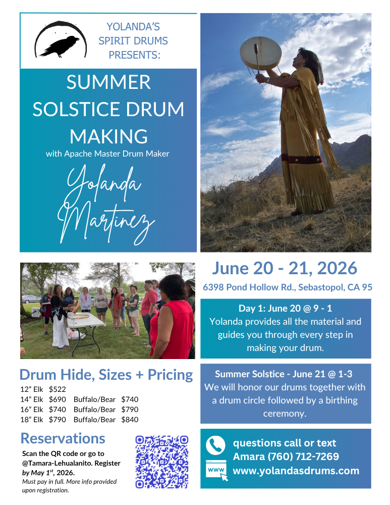 I’m thrilled to invite you to join me for a special Drum Making Workshop. As an Apache, Comanche/Inca Native from Southern New Mexico, I've been crafting drums since 1987 and am honored to be considered a Master Drum Maker. My passion extends beyond drum making, as I also lead Drumming Circles, Moon Lodge Circles, Sound Healing sessions, and Dream Journeys. With three Nammy/Grammy awards, an International Book Award and international performances under my belt, I can't wait to share this experience with you.